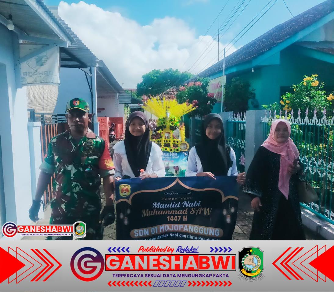 Banyuwangi – Babinsa Kelurahan Mojopanggung, Kopral Kepala (Kopka) Ridwan Letsoin, hadir dan memantau langsung Kirab Maulid Nabi Muhammad SAW ke-1447 H yang digelar SDN 1 Mojopanggung, Jumat pagi (19/9/2025), di Lingkungan Cungking, Kelurahan Mojopanggung, Kecamatan Giri. Kegiatan ini menjadi bagian dari pembinaan karakter religius dan kedisiplinan siswa sejak dini.