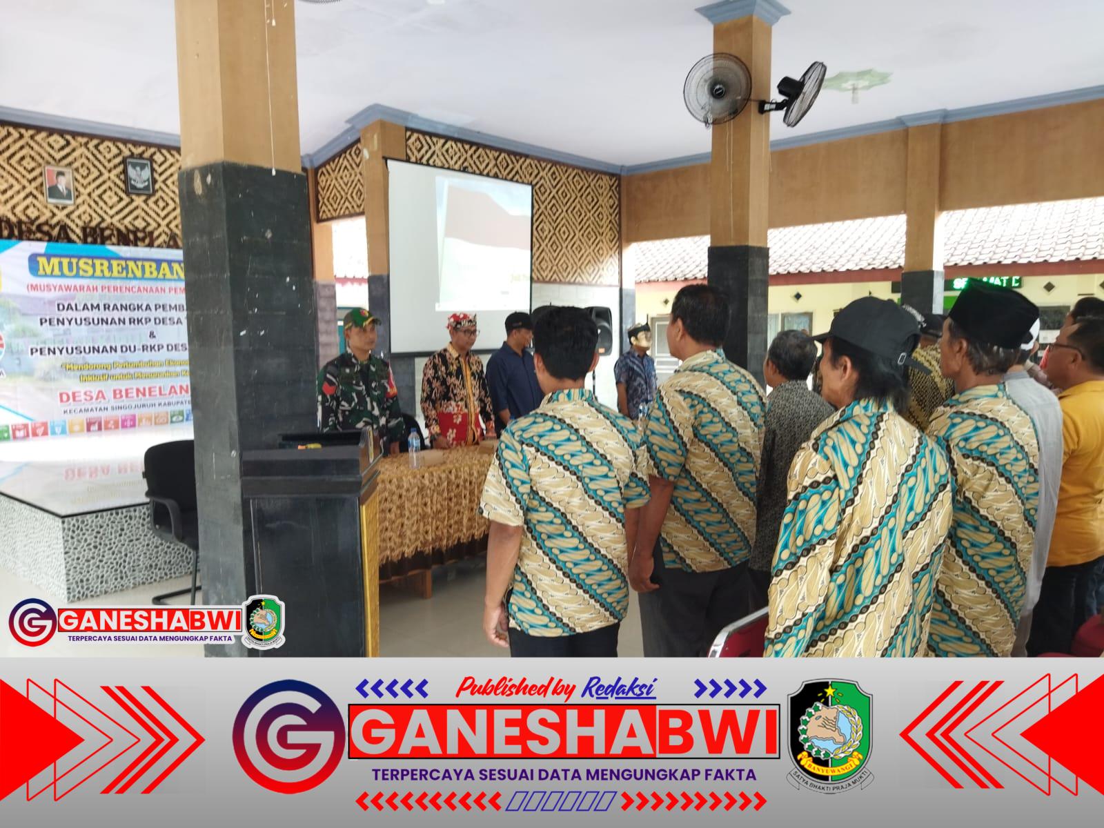Singojuruh – Babinsa Desa Benelan Kidul, Koramil 0825/13 Singojuruh, Kopka Agus Hidayatullah, menghadiri Musyawarah Perencanaan Pembangunan Desa (Musrenbangdes) Tahun Anggaran 2025 di Pendopo Kantor Desa Singojuruh, Kamis (2/10/2025).