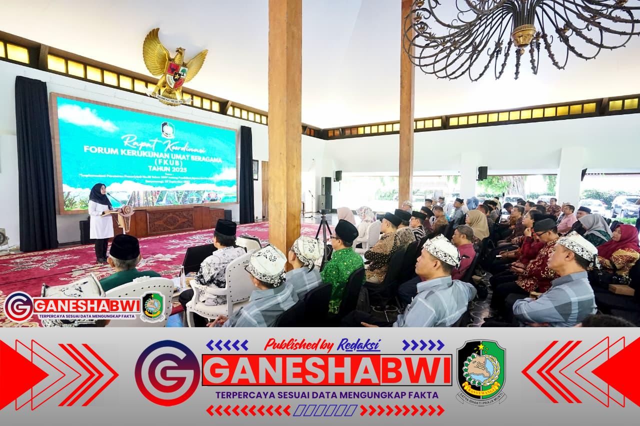 Banyuwangi – Bupati Banyuwangi Ipuk Fiestiandani mengimbau tokoh agama untuk memperkuat ketahanan keluarga sekaligus menjaga kerukunan di tengah masyarakat. Hal itu disampaikan dalam Rapat Koordinasi Forum Kerukunan Umat Beragama (FKUB) Kabupaten Banyuwangi di Pendopo Shaba Swagata Blambangan, Sabtu (27/9/2025).