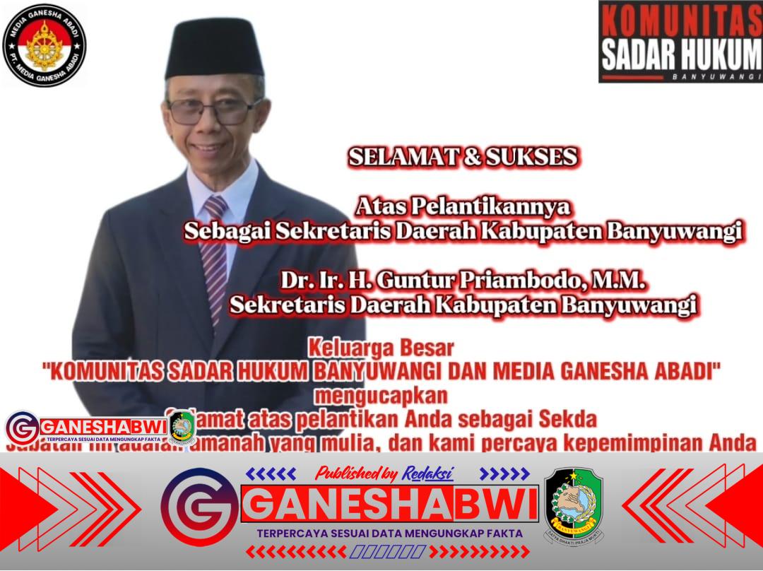“Jabatan Sekda adalah amanah mulia. Kami percaya kepemimpinan Dr. Ir. H. Guntur Priambodo, M.M. akan membawa perubahan positif, memperkuat tata kelola pemerintahan, dan meningkatkan kesejahteraan masyarakat Banyuwangi,” demikian pernyataan resmi keluarga besar Komunitas Sadar Hukum Banyuwangi dan Media Ganesha Abadi.