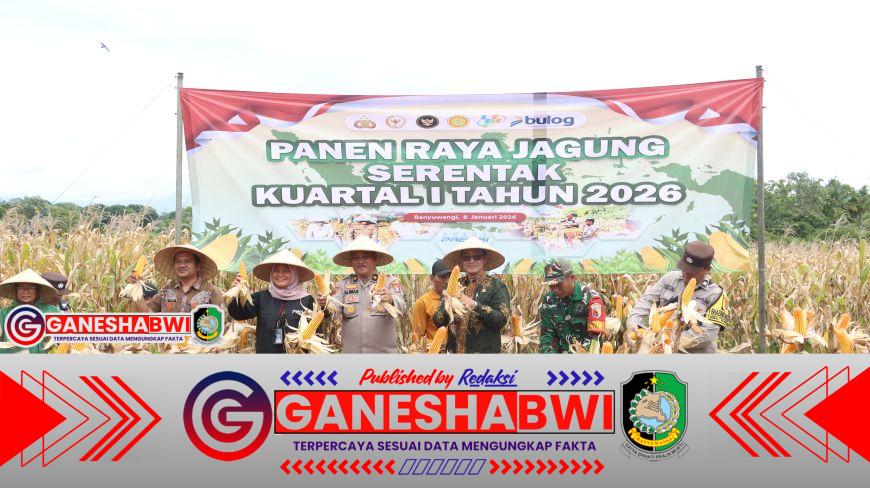Banyuwangi – Pemanfaatan lahan desa untuk sektor pertanian produktif terus diperkuat Polresta Banyuwangi. Salah satunya melalui kegiatan panen jagung yang dilaksanakan serentak pada Kuartal I Tahun 2025 di wilayah Kecamatan Genteng, Kabupaten Banyuwangi, Kamis (8/1/2026).