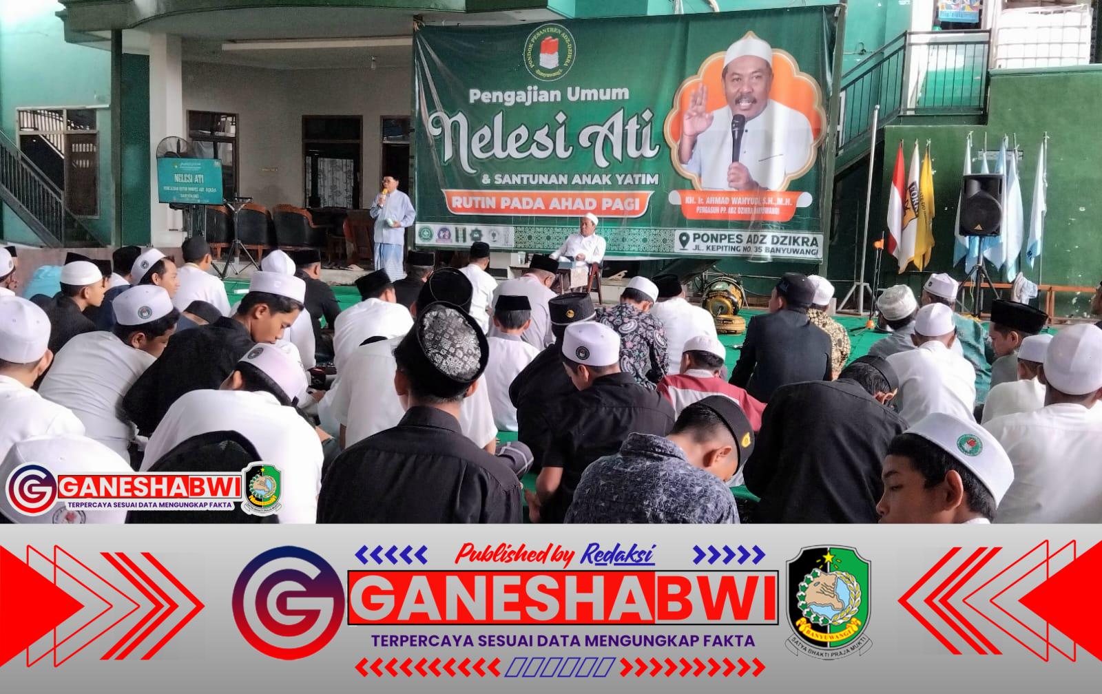 Banyuwangi – Aula Sidqi Maulana Pondok Pesantren Adz-Dzikra, Banyuwangi, kembali dipenuhi ratusan jamaah pada pengajian rutin Ahad pagi bertajuk “Nelesi Ati” sekaligus santunan anak yatim, Minggu (21/9/2025). Acara ini dihadiri santri, wali santri, tokoh ormas, serta masyarakat sekitar, berlangsung penuh khidmat dan menambah semangat spiritual jamaah.