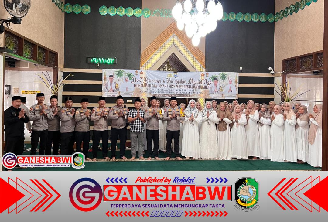 Banyuwangi – Suasana khidmat menyelimuti peringatan Maulid Nabi Muhammad SAW 1447 H/2025 M yang digelar di Masjid Roudhotul Jannah Polresta Banyuwangi, Senin (8/9/2025).