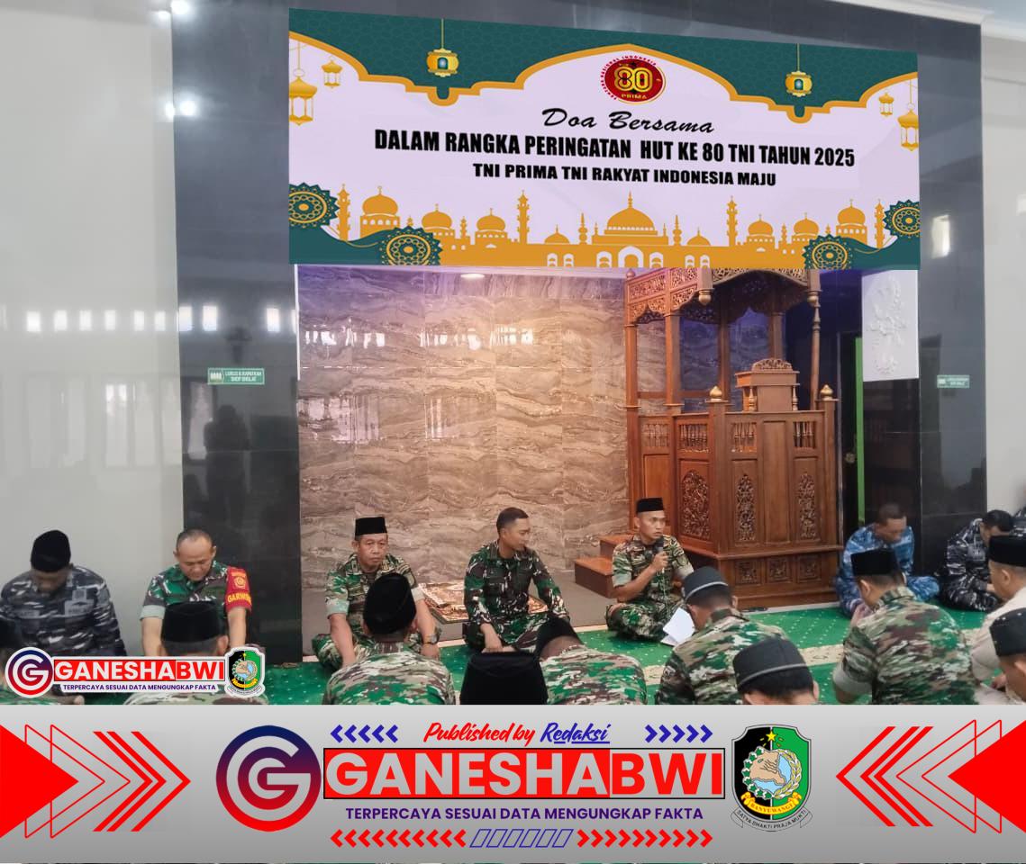 Banyuwangi – Dalam rangka memperingati Hari Ulang Tahun ke-80 Tentara Nasional Indonesia (TNI), Kodim 0825/Banyuwangi menggelar doa bersama di Masjid A. Yani, Makodim 0825, Jumat (4/10/2025).