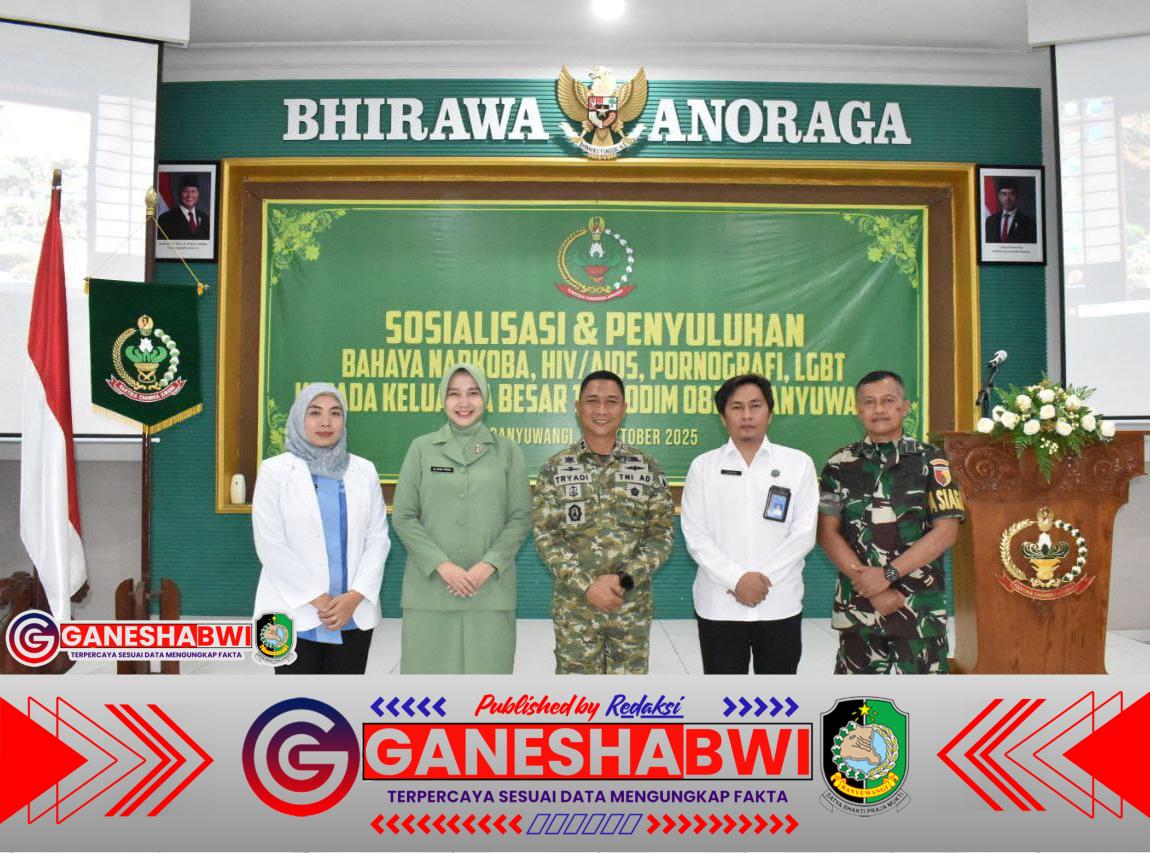 Banyuwangi – Kodim 0825/Banyuwangi mengadakan kegiatan Sosialisasi dan Penyuluhan Bahaya Narkoba, HIV/AIDS, Pornografi, dan LGBT bagi keluarga besar TNI, bertempat di Aula Panglima Sudirman Makodim 0825 Jalan RA Kartini Nomor 02, Kepatihan, Kabupaten Banyuwangi, Senin (13/10/2025). Kegiatan ini bertujuan meningkatkan pemahaman dan kewaspadaan terhadap berbagai ancaman sosial yang dapat merusak moral serta masa depan generasi muda.