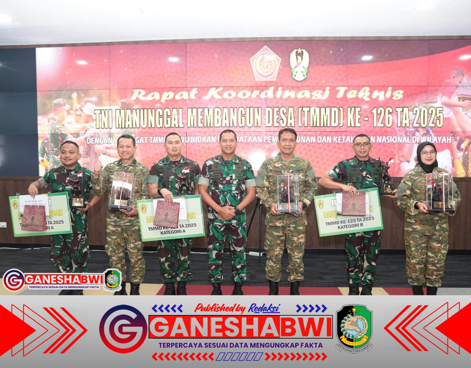 Banyuwangi – Program TNI Manunggal Membangun Desa (TMMD) ke-125 Tahun Anggaran 2025 resmi ditutup dengan capaian membanggakan bagi Kodim 0825/Banyuwangi. Tidak hanya sukses merealisasikan pembangunan yang bermanfaat langsung bagi masyarakat, Kodim 0825 juga berhasil membawa pulang tiga penghargaan tingkat nasional sekaligus.