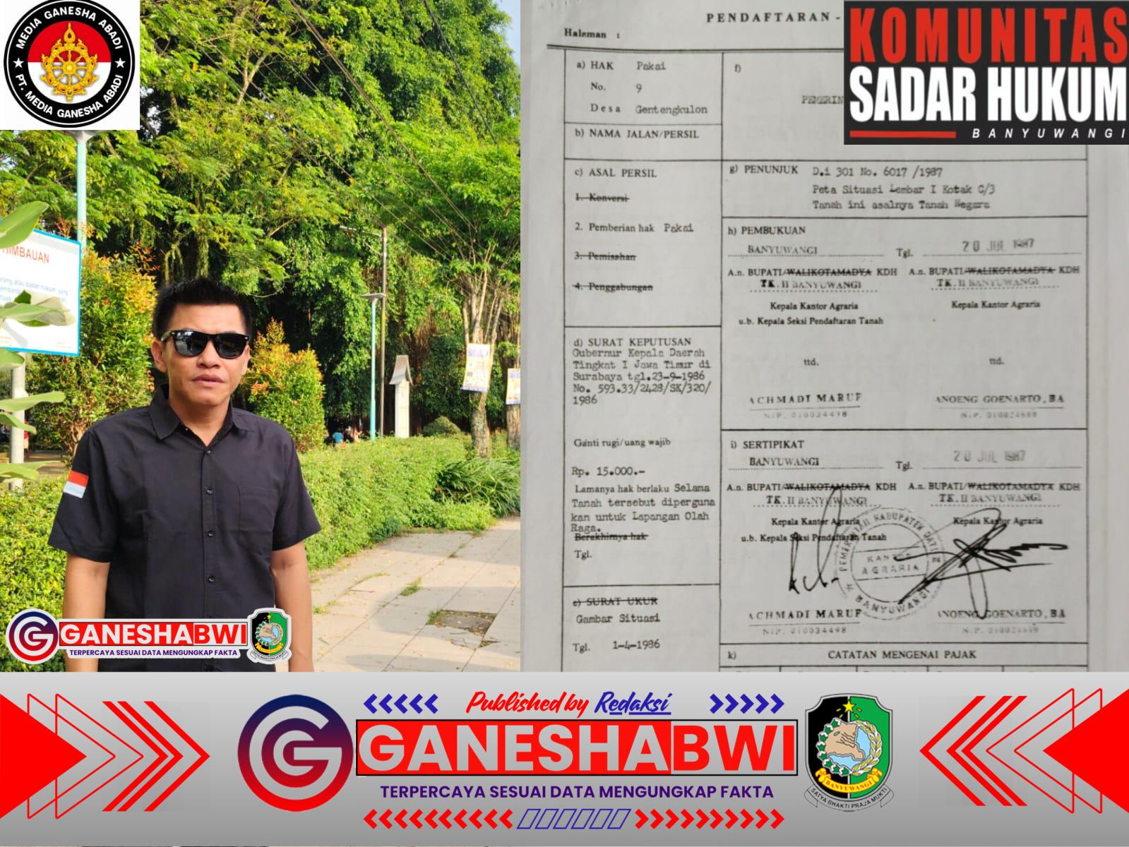 Banyuwangi — Ketua Komunitas Sadar Hukum Banyuwangi menegaskan langkah serius mereka dalam mengawal dugaan pelanggaran hukum terkait pengelolaan tanpa legalitas Lapangan Maron, Desa Genteng Kulon, Kecamatan Genteng, Kabupaten Banyuwangi.