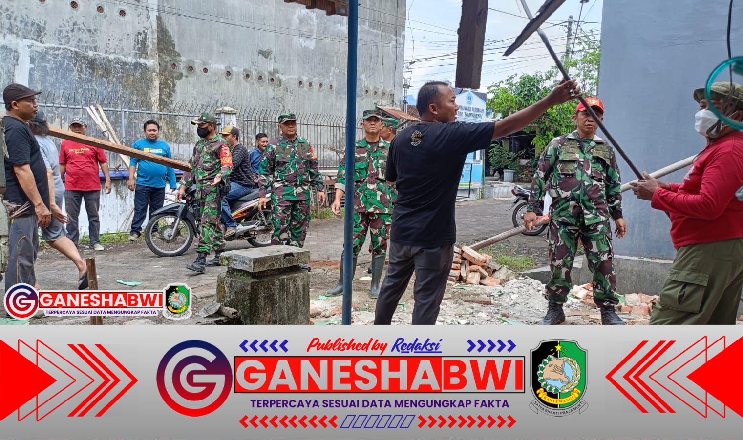 Kabat – Bentuk kepedulian TNI terhadap warga yang terdampak bencana kembali terlihat di Desa Pakistaji, Kecamatan Kabat. Pada Minggu (9/11/2025) pagi, personel Koramil 0825/14 Kabat bersama warga melaksanakan kegiatan Karya Bakti membantu memperbaiki rumah milik Halimi, warga Dusun Krajan RT 01 RW 10, yang roboh akibat hujan deras disertai angin kencang.