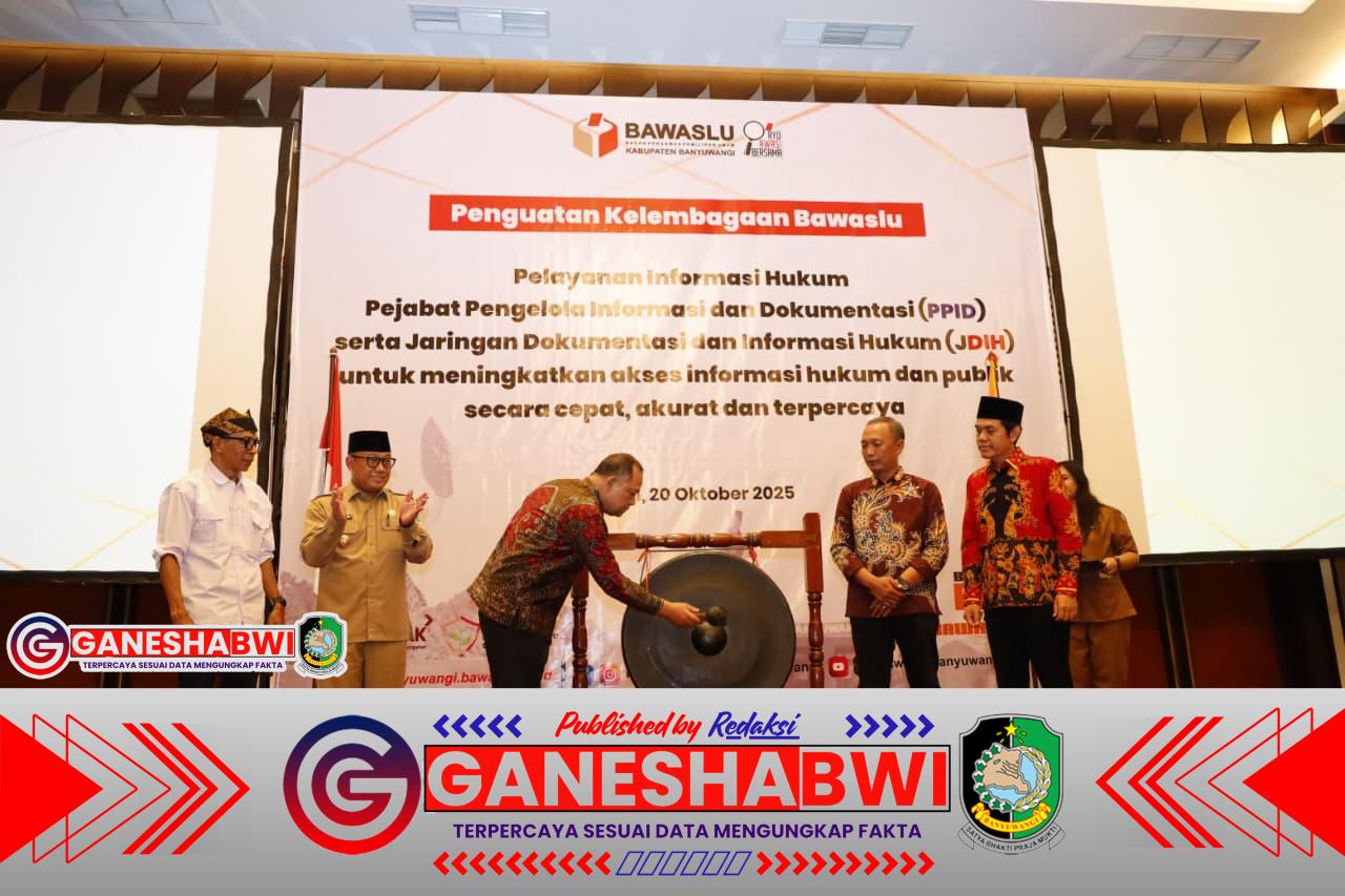 Banyuwangi – Wakil Bupati Banyuwangi, Mujiono, menghadiri rapat koordinasi Penguatan Kelembagaan Pelayanan Informasi Hukum yang digelar Bawaslu Banyuwangi di El Hotel, Senin (20/10/2025). Dalam kesempatan ini, Mujiono menekankan pentingnya Bawaslu lebih responsif terhadap kebutuhan informasi publik.